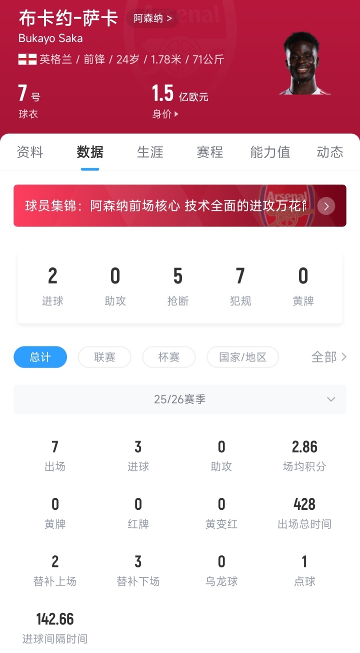 涨还是跌?德转预热萨卡身价变动:最低1.2亿欧最高1.6亿