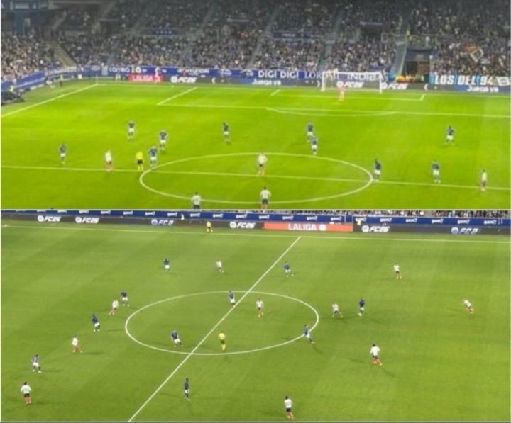 西甲未播出本场比赛的前25秒,主裁吹响开场哨后,镜头马上切到球场的俯瞰视角,放了将近20秒才回到球场内,但给的是双方主帅特写。待到比赛画面恢复,比分牌上的计时器显示已是0分26秒。